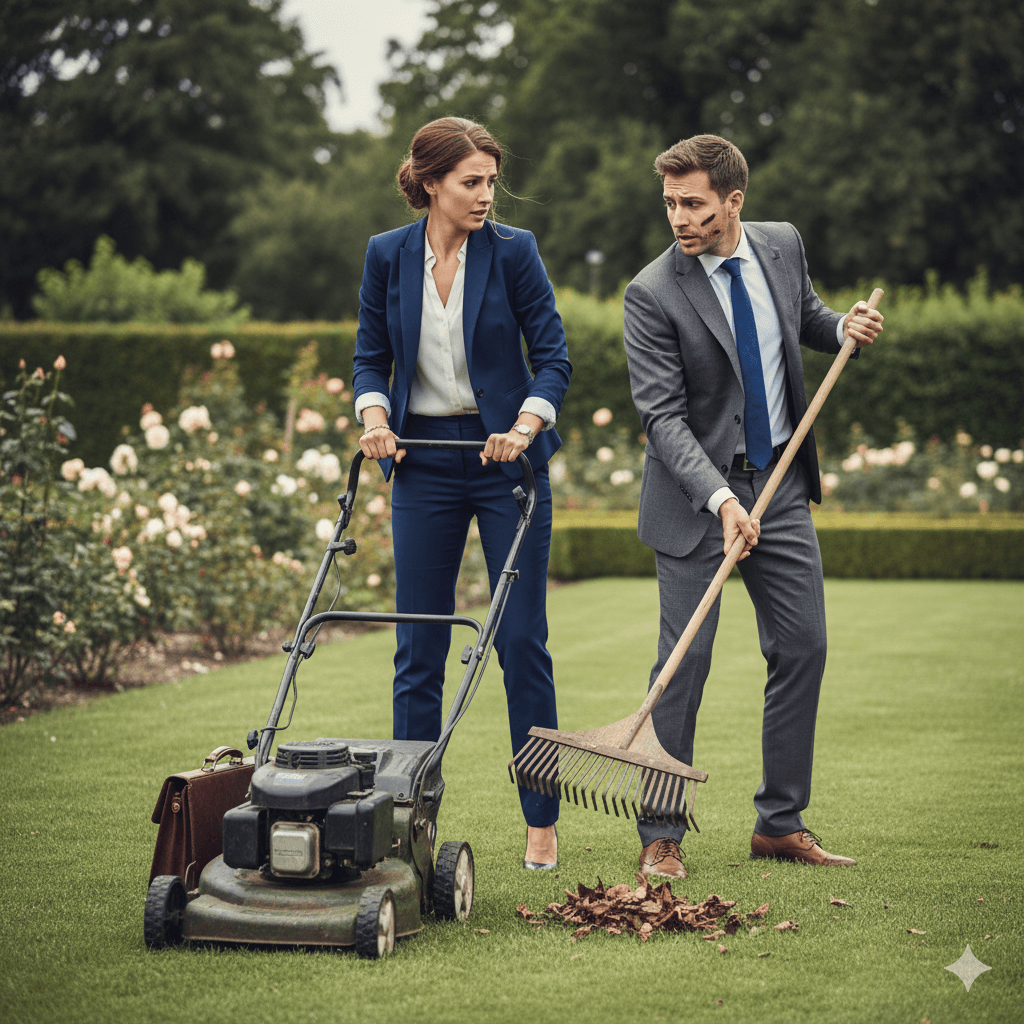 E così, anche se non dovresti, ti ritrovi di nuovo tu con il rastrello in mano. A sistemare, a controllare, a pensare a un lavoro che non dovrebbe nemmeno passarti per la testa.